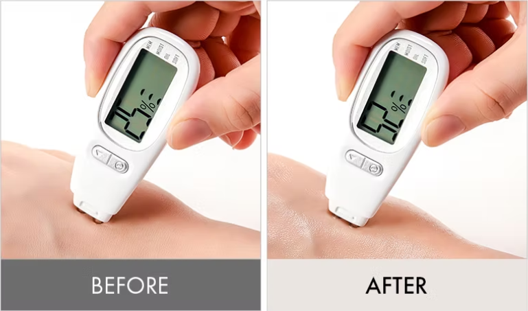 We figured out that moisture level has been increased from 25% to 52% based on our own skin moisturizing test *There may be deviations depending on the measurement environment and individual skin condition